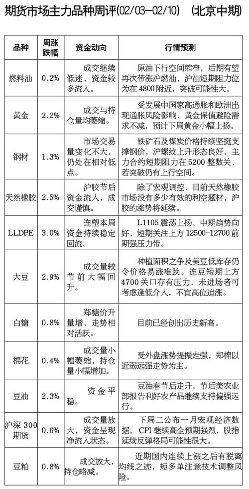 期貨市場(chǎng)主力品種周評(píng)[02.02-02.10]