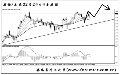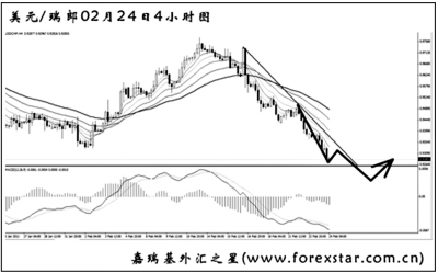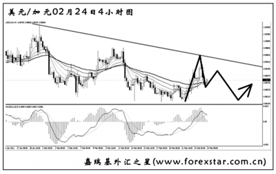 ▲美元兌加元在跌破了去年4月的低點(diǎn)0.9925一線之后繼續(xù)震蕩下行,從4小時圖上看,匯價走勢雜亂無序。圖中下降趨勢線為日線圖構(gòu)筑,對匯價形成了很好的壓制作用。按目前的趨勢判斷,美元兌加元將繼續(xù)以震蕩走弱為主,何時能夠突破下降趨勢線成為匯價反轉(zhuǎn)的先決條件。