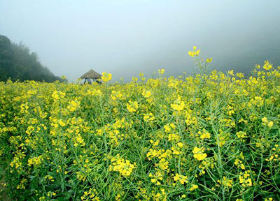 在海拔1000米的石灶天池上的石門(mén)國(guó)家森林公園里,有著被譽(yù)為廣東第一高山的油菜花海。上百畝的油菜花田,綿延了將近兩公里。微風(fēng)吹來(lái),漫山遍野的金黃色如波浪翻涌,在茂密森林和天然河谷的映襯下,構(gòu)成一幅心曠神怡的田園風(fēng)光圖。今年公園更新設(shè)了獨(dú)特的“梯田油菜花”,站在頂端之上,一級(jí)級(jí)交錯(cuò)的油菜花海就在腳下,仿如一本立體的燙金畫(huà)冊(cè)。