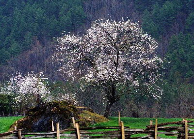 位于林芝縣的嘎拉桃花村,也是賞桃花的最佳地點(diǎn)。一排排盛開(kāi)的桃花在臺(tái)階式綠色麥田的襯托下,整個(gè)山坡如同藏族婦女的圍裙耀眼奪目。游客來(lái)到這仙境般的桃花村,不僅可以領(lǐng)略到藏族姑娘的熱情好客,還可以體會(huì)到勞動(dòng)的歡樂(lè)場(chǎng)面。