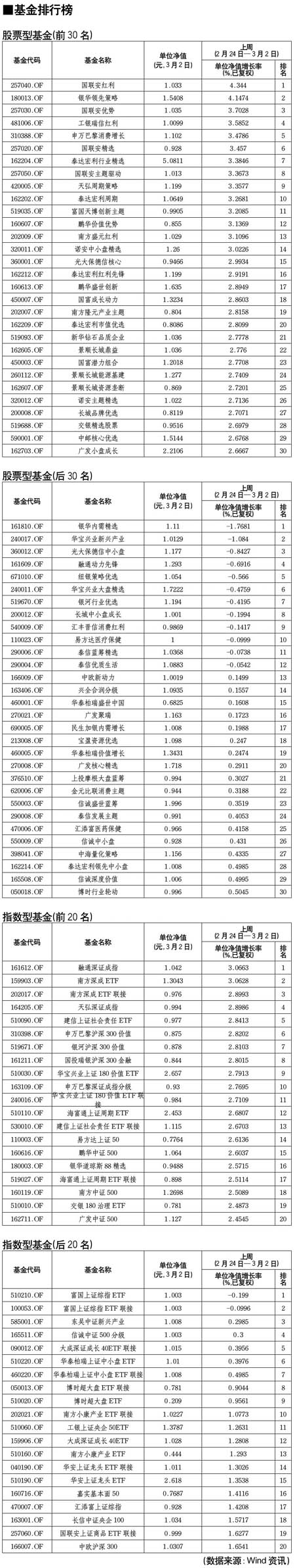 股票型基金排行榜[2011-03-04]