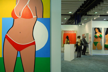 “軍械庫藝術(shù)展”日前在美國紐約開幕,每年3月在紐約舉行的“軍械庫藝術(shù)展”是國際著名的現(xiàn)當代藝術(shù)品交易展覽會,吸引世界各地的藝術(shù)家、畫廊、經(jīng)銷商、收藏者等前來參觀。 圖為馬喬里?斯特賴德的油畫作品在“軍械庫藝術(shù)展”上展出。新華社發(fā)