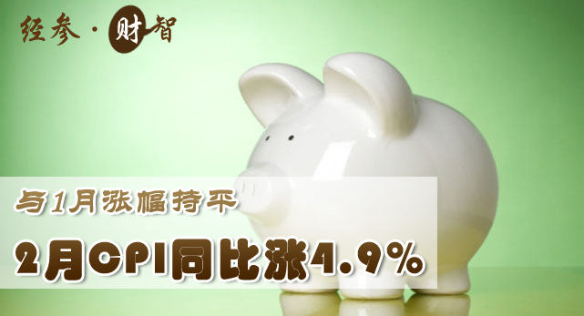 2011年3月11日,國(guó)家統(tǒng)計(jì)局發(fā)布數(shù)據(jù),2月居民消費(fèi)價(jià)格(CPI)同比上漲4.9%,食品價(jià)格上漲11%;工業(yè)品出廠價(jià)格(PPI)同比上漲7.2%。