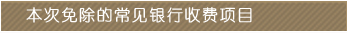 ·同城本行存取款和轉(zhuǎn)賬手續(xù)費(fèi)(貸記卡除外) ·密碼修改手續(xù)費(fèi)和密碼重置手續(xù)費(fèi)