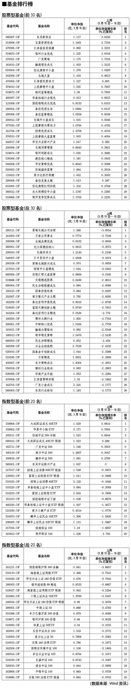 股票型基金排行榜[2011-03-18]