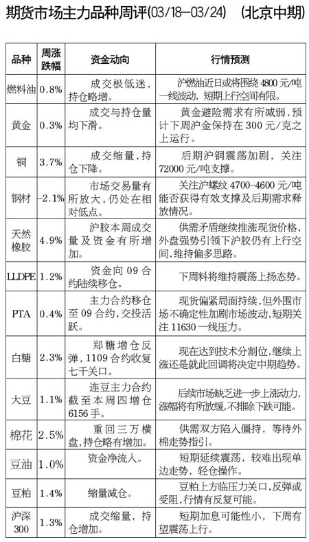 期貨市場主力品種周評[03.18-03.24]