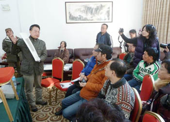 來(lái)自臺(tái)灣的呂良遠(yuǎn)近日在廈門鼓浪嶼一小型沙龍上,向大陸準(zhǔn)備進(jìn)入藝術(shù)品市場(chǎng)的潛在藏家講授攝影收藏的基本知識(shí)。曾璜攝(中國(guó)特稿社) |