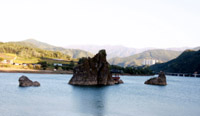 從島潭三峰入口的反方向過去,山坡上有一個(gè)小小的離鄉(xiāng)亭,是為了安慰那些因建忠州大壩而使得故鄉(xiāng)被淹的人們所建。上到亭子,可將島潭三峰盡收眼底。從離鄉(xiāng)亭的另一方向,沿路而上大約300米左右,有一塊巨石,中間被穿透形成一個(gè)大孔,形似大門,又恍若彩虹,名為“石門”,擁有著獨(dú)特的造型之美,不得不讓人感嘆天工之妙。