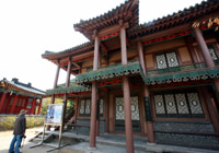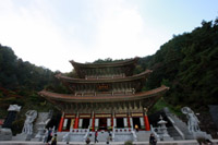 除了最有名的丹陽(yáng)八景,丹陽(yáng)另有一處值得一去,那就是巍峨壯觀的救仁寺。位于丹陽(yáng)小白山的救仁寺是韓國(guó)佛教天臺(tái)宗宗本山的寺廟,建于1945年。與其他通常較為樸素的韓國(guó)寺廟相比,救仁寺有著截然不同的感覺。上山途中,沿路威嚴(yán)的建筑就令人產(chǎn)生一種仿佛身在中國(guó)的錯(cuò)覺——高大、華麗。而山頂上最大的寶殿——三層之高的大祖師殿,更是金碧輝煌,雄偉壯觀。這樣華美的寺廟在韓國(guó)可以說是獨(dú)一無二,徒步半小時(shí)上山的辛苦也都一掃而空。