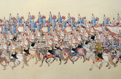八國聯(lián)軍侵華時期被從北京紫禁城掠奪到歐洲的《大閱圖·行陣》(局部)