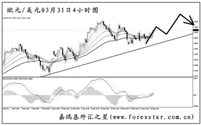 ▲美元兌瑞郎的反彈將4小時圖下降趨勢線突破,但從日線圖上看,均線系統(tǒng)的壓制作用仍然保持,同時道氏理論顯著高點的阻力在0.9370,升破后方可結束階段性的下跌。從圖中看,由于美元兌瑞郎此波反彈的力度有限,匯價仍然有向趨勢線發(fā)起回抽的風險。向上做多需謹慎。