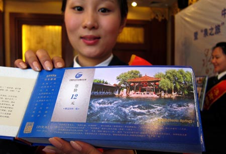 3月27日,濟(jì)南市公交總公司在游777路公交線路上推出我國首套明信片式公交車票。這套公交車票以“泉之旅”為主題,正面是濟(jì)南七十二名泉風(fēng)光及票價、站點(diǎn)、旅游信息等內(nèi)容,反面是明信片標(biāo)準(zhǔn)郵政格式并附有一張80分的郵票,乘客可像使用普通明信片一樣直接投寄使用。