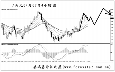 ▲美元兌加元的下跌勢頭保持良好,再度創(chuàng)出新低之后,將周線圖0.9710的支撐也順利跌破,后市將挑戰(zhàn)的點(diǎn)位是2007年11月初的低點(diǎn)0.9060。圖中下降趨勢線和均線系統(tǒng)的雙重壓制對匯價(jià)的反彈造成了很大的影響。預(yù)計(jì)匯價(jià)回探趨勢線后將繼續(xù)以下行為主。