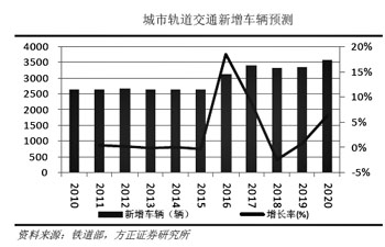 “我國(guó)城市軌道交通的發(fā)展?jié)摿薮,?jù)國(guó)務(wù)院批復(fù)的地鐵建設(shè)規(guī)劃,至2015年,全國(guó)將新建軌道交通79條,總長(zhǎng)達(dá)2300公里,總投資約8820億元。公司面臨著軌道交通裝備產(chǎn)業(yè)持續(xù)、穩(wěn)定、快速發(fā)展的良好機(jī)遇!敝x紀(jì)龍表示,“2010年,中國(guó)北車城軌地鐵業(yè)務(wù)量就實(shí)現(xiàn)了翻倍增長(zhǎng),營(yíng)業(yè)收入51.63億元,2008年至2010年年復(fù)合增長(zhǎng)率高達(dá)74.5%。”