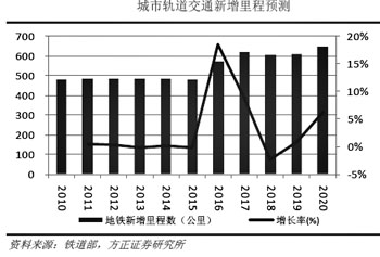 從2015年至2020年,全國(guó)地鐵建設(shè)將進(jìn)入高峰期,地鐵運(yùn)營(yíng)里程將增長(zhǎng)1倍。相比其他基建設(shè)施,地鐵的建設(shè)將在未來(lái)長(zhǎng)期保持較快增速,同時(shí)地鐵大規(guī)模建設(shè)的時(shí)期將出現(xiàn)在2015至2020年間,其建設(shè)的生命周期明顯長(zhǎng)于其他基建項(xiàng)目。