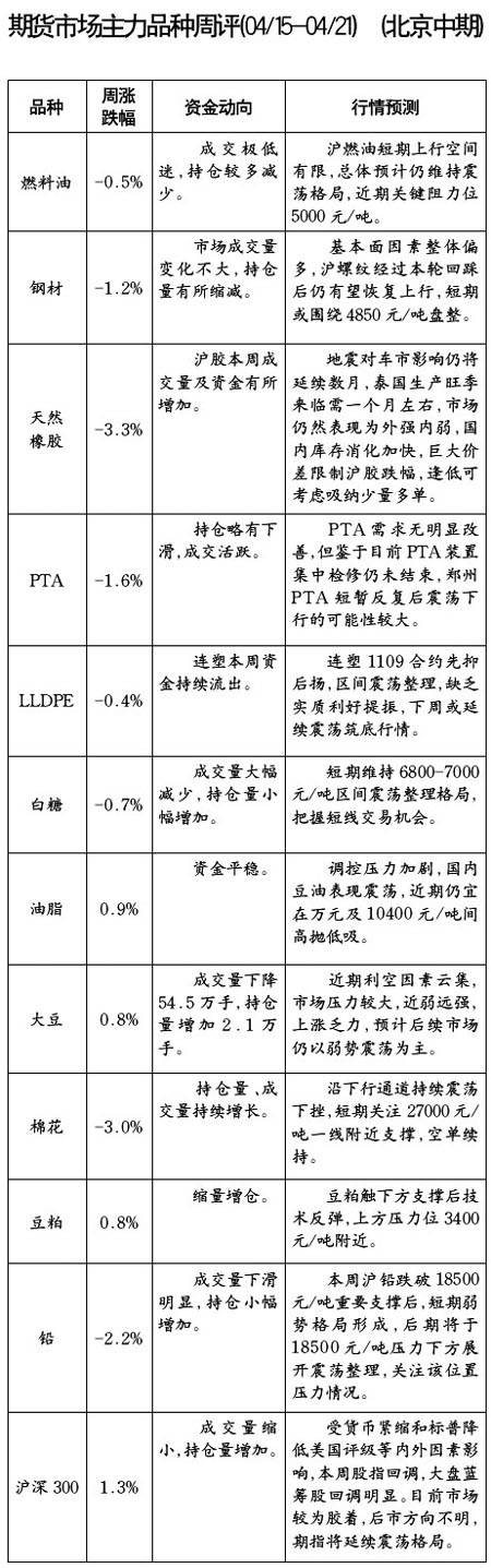 期貨市場主力品種周評[04.15-04.21]