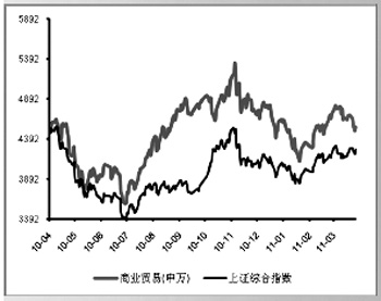 該券商發(fā)布的報告表示,長期來看,在擴(kuò)大內(nèi)需和通脹預(yù)期的背景下,商業(yè)貿(mào)易行業(yè)未來將持續(xù)受益于居民收入的快速增長。短期來看,食品價格繼續(xù)回落,汽車等非生活必需品消費(fèi)回暖,同時宏觀調(diào)控政策進(jìn)一步明朗,共同推動了3月份銀行卡持卡人消費(fèi)信心指數(shù)(BCCI)的連續(xù)回升。新華·銀聯(lián)中國銀行卡消費(fèi)信心指數(shù)(BCCI)顯示,2011年3月份的BCCI為86.72,環(huán)比上升0.68。