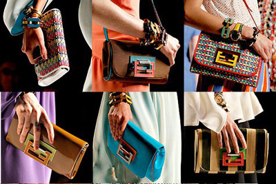 2011春夏手包系列,將色彩的碰撞和拼接表現(xiàn)得活力和張揚,這也使得Fendi手包在秀場一出現(xiàn)便引起躁動,調(diào)色盤一般輪番上陣的彩色包包讓人目不暇給,這樣高調(diào)的色彩游戲被設(shè)計師玩得氣定神閑,為本季的手包增添了不少趣味。