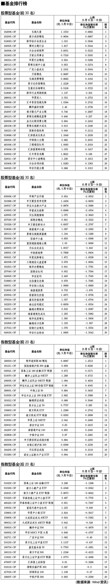 股票型基金排行榜[2011-05-20]