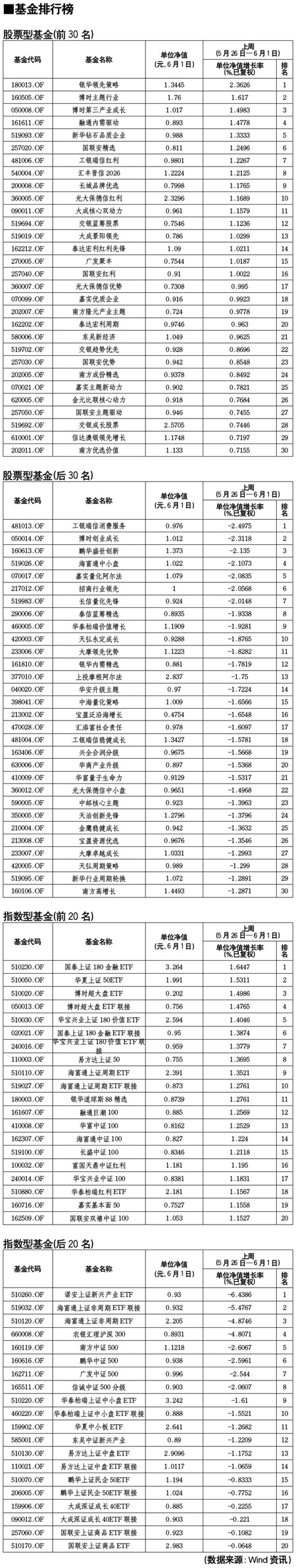 股票型基金排行榜[2011-06-03]