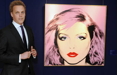 圖為媒體預(yù)展上展示的安迪·沃霍爾的畫作《Debbie Harry》,估價(jià)3.5-5.5百萬英鎊。