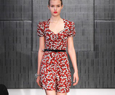 海邊的清風(fēng)之中,濃烈的紅成為伊夫圣羅蘭YSL 2012早春度假系列女裝中精彩的一筆。修身剪裁的皮革風(fēng)衣與白襯衫搭配,裸露出筆直修長(zhǎng)的雙腿,紅色手包與黑色套裝的搭配再一次讓人沉醉于經(jīng)典配色的魅力。而到了后半場(chǎng),當(dāng)妖嬈的紅色罌粟花從衣角、腰際蔓延開來,在復(fù)古感的公主袖連身裙與雪紡禮服上綻放之時(shí),伊夫圣羅蘭女郎們冷艷、魅惑、性感的氣質(zhì)也被釋放出來。