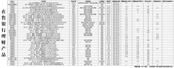 在售銀行理財(cái)產(chǎn)品[2011-06-10]