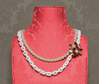 新款 miu miu 珠寶系列為您呈現(xiàn)了多色超大噴漆項鏈、胸針、耳環(huán)和手鏈。這些珠寶與飾有珀斯佩有機玻璃的珍珠貼頸項鏈一起,形成一種令人驚詫的魅惑感。