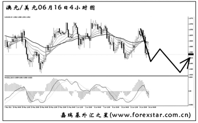 澳元兌美元自5月初沖高回落之后已經(jīng)超過一個(gè)月處于大型震蕩的走勢(shì)之中。從日線圖上看,匯價(jià)多次刺穿均線系統(tǒng),整體的漲勢(shì)已經(jīng)遭遇挑戰(zhàn)。澳元短線仍然面臨回落的風(fēng)險(xiǎn),關(guān)注1.0435乃至道氏低點(diǎn)1.0390的支撐,若匯價(jià)跌破此一帶關(guān)卡,中線的漲勢(shì)將面臨結(jié)束的風(fēng)險(xiǎn)。但在跌破前,做空澳元仍需謹(jǐn)慎。