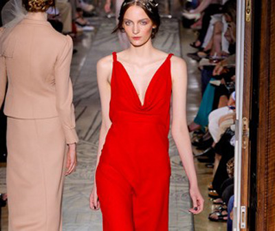 長(zhǎng)袖曳地禮服、及膝A字裙、肩線(xiàn)圓潤(rùn)的套裝……2011秋冬華倫天奴