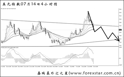 而美元并沒有受非農(nóng)數(shù)據(jù)的影響而大幅下挫,目前仍處于一個日線的盤整局面之中。美指短暫突破了收斂三角形的上沿,并刺破了76.35的高點,但此后大幅下挫,短線主趨勢再度轉(zhuǎn)為向下。從力度交替的角度考慮,美元后市挑戰(zhàn)圖中下方趨勢線支撐的概率較大,一旦跌破,再戰(zhàn)前低72.65并非沒有可能。