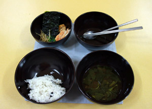 一個(gè)小時(shí)后,活動(dòng)活動(dòng)酸麻的雙腿,進(jìn)行缽盂供養(yǎng)。缽盂供養(yǎng)是佛家的傳統(tǒng)佛教用餐法,以公平分配飲食為原則,不浪費(fèi)一滴水一粒糧食。