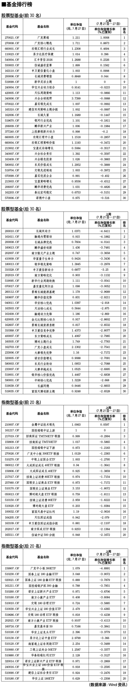 股票型基金排行榜[2011-07-29]
