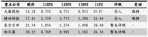 設(shè)備制造商的復(fù)蘇有賴于風(fēng)電場的發(fā)展,我們看到風(fēng)電場和風(fēng)機制造商所面臨的形勢日益分化。對風(fēng)機制造商而言,我們認(rèn)為其產(chǎn)品毛利率和銷售均價將在2011、2012、2013年進一步下滑15%、11%、4%,他們?nèi)匀辉陂g接地為風(fēng)電場的運營資金提供融資。我們預(yù)計在2012年中期之前這些企業(yè)的基本面難以企穩(wěn),因此目前不建議買入設(shè)備股。