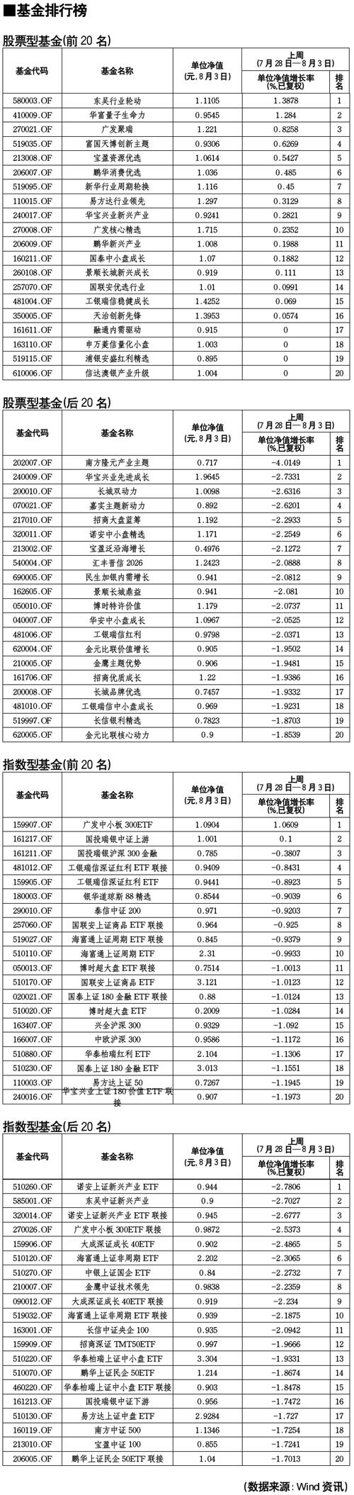 基金排行榜[2011-08-05]