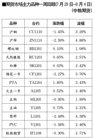 期貨市場(chǎng)主力品種一周回顧[7月29日-8月4日]