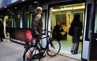此外,丹麥的地鐵和輕軌火車都允許乘客攜帶自行車上下(見右圖),這樣就更加方便了市民騎車出行。當(dāng)然前提是車廂里沒有我們這么多人,不然人都快沒有立足之地了,哪還有放自行車的地方?