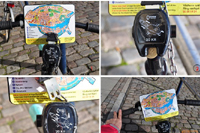 在哥本哈根,我無意中看到了幾輛樣子特別的自行車。難道這就是傳說中為游客設(shè)置的免費自行車么?趕緊過去看看。果然是它們,免費自行車有各種型號,你可以根據(jù)自己的身高選擇一款。車把上,很貼心地設(shè)置了自行車游哥本哈根的地圖,還告訴你,有多少地方可以找到這樣的免費“午餐”(見右下圖)。