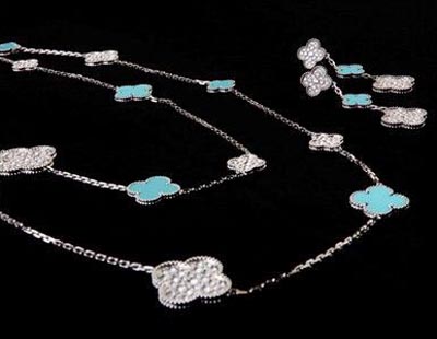 此次,梵克雅寶為摩納哥查倫王妃慈善機(jī)構(gòu)打造了15套限量版的鑲鉆首飾,這款首飾用細(xì)微的變化重新詮釋了該品牌的標(biāo)志性主題阿罕布拉(Alhambra)系列。阿罕布拉系列誕生于1968年,是梵克雅寶的經(jīng)典暢銷款式。這款精致的耳環(huán)和項(xiàng)鏈密鑲著晶瑩剔透的鉆石和嬌綠欲滴的綠松石,在藝匠揮灑的設(shè)計(jì)巧思中,再現(xiàn)了贏盡贊嘆的