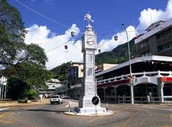 1903年,為慶祝塞舌爾成為大英帝國(guó)的殖民地,英國(guó)人在維多利亞市中心仿照英國(guó)“大本鐘”的模樣,豎起了一座“小本鐘”。如今這座鐘依然靜靜地矗立在那里,默默地體會(huì)著世事滄桑,而鐘的對(duì)面就是塞舌爾全國(guó)唯一的交通信號(hào)燈。