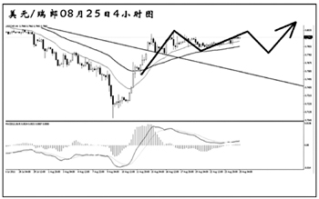 美元兌瑞郎近期強(qiáng)力反彈,接連升破了兩條下降壓力線的阻力,同時,圖中均線系統(tǒng)已經(jīng)形成依托排列,瑞郎的強(qiáng)勢基本告一段落。目前匯價持續(xù)在對此前的上漲進(jìn)行修正,短線調(diào)整結(jié)束之后有望繼續(xù)上行,向周線圖的趨勢線阻力0.8300一帶挺近。