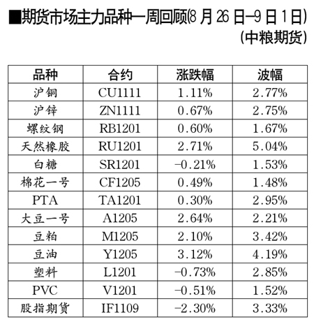 期貨市場主力品種一周回顧[8月26日-9月1日]