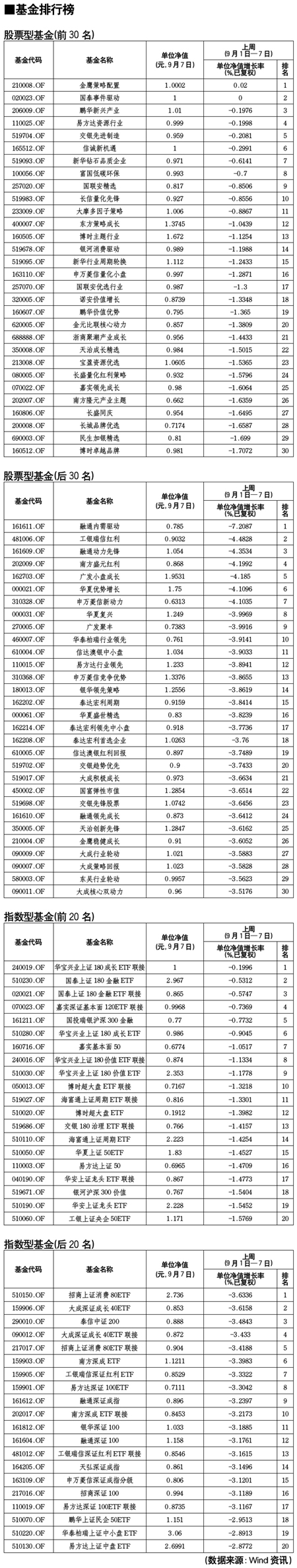 股票型基金排行榜[2011-09-09]