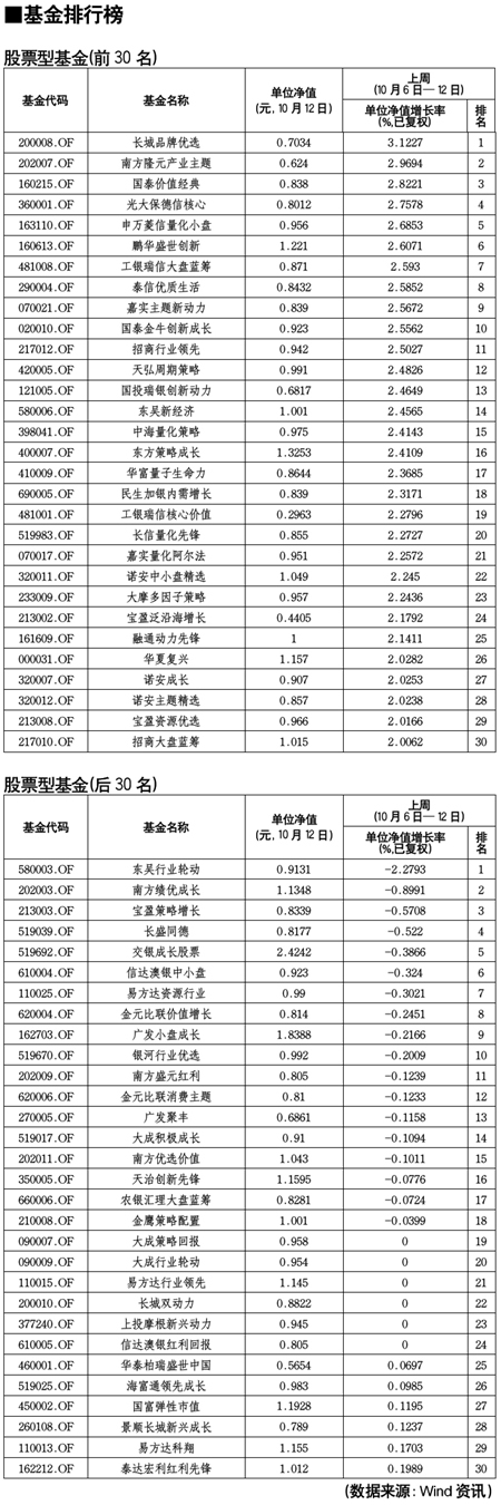 股票型基金排行榜[2011-10-14]