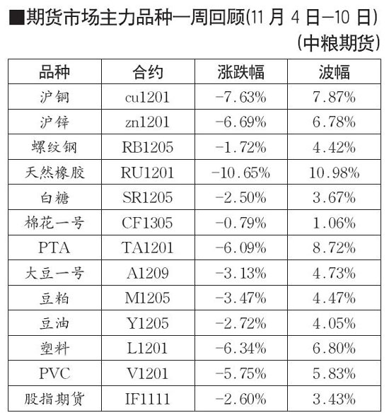 期貨市場主力品種一周回顧[10月28日-11月3日]