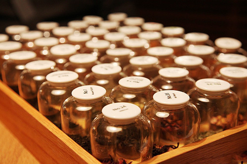 所有茶類在餐單上都有編號(hào),你可以找出心儀茶品的編號(hào),然后再?gòu)幕@子里找出來(lái)聞聞。品茶這回事有時(shí)很難從文字上描繪出真正的感覺,直接體驗(yàn)實(shí)物會(huì)有更直觀的印象,這也是茶館貼心服務(wù)的體現(xiàn)。