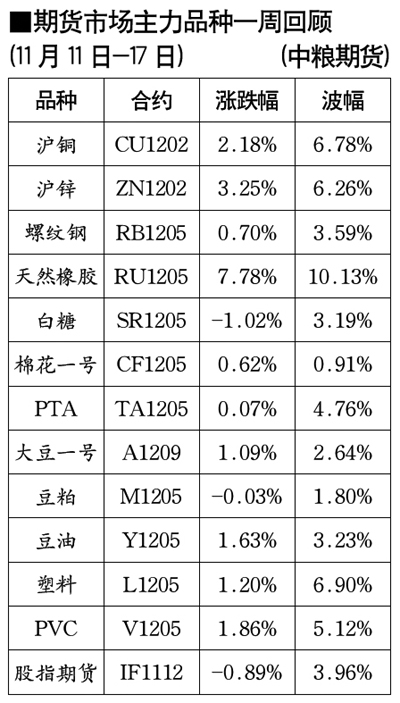 期貨市場(chǎng)主力品種一周回顧[11月11日-17日]