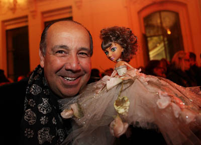 圖為法國設(shè)計師Max Chaoul展示自己設(shè)計的洋娃娃。