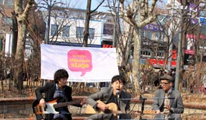 若趕上星期六下午,幸運的你可以到弘大兒童公園門口的自由市場盡情淘寶。這里是藝術家的跳蚤市場,每周六,年輕藝術創(chuàng)作者們聚集在此展示出售自己的作品:獨一無二的T恤衫,大膽創(chuàng)意的鞋帽,無比精美的手工飾品,個性原創(chuàng)的畫作……可以說,即使只是一個小小的咖啡杯,抑或一只別致的小頭飾,都充滿了新鮮創(chuàng)意,讓人驚嘆藝術之美。經(jīng)常會有年輕的藝術家,一邊進行藝術創(chuàng)作一邊出售物品。對他們來說,藝術絕不是一種販賣,而是一種人生的追求。在沉默低調的藝術家們專注忘我的眼神里,充滿了對藝術的熱愛與執(zhí)著,令人心生感動。有時,市場還會以各種專題進行展示,比如“環(huán)保藝術”,就是藝術家們利用再生材料制作出各種飾品,邊創(chuàng)作邊展示,整個市場變成了一場藝術創(chuàng)意展。同時,還有手藝精湛的街頭畫家、激情四射的演奏者們在此表演,有了他們的加入,小小的公園變成了節(jié)日狂歡的海洋,相當熱鬧有趣。看著這些充滿感性的藝術愛好者們的真誠與熱情,相信每個人心中都會不知不覺涌起一股激情與感動……