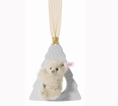 雅致LLADRO再次與Steiff泰迪熊公司合作,全新推出一件以陶瓷作為配飾的迷你泰迪熊作品。這件泰迪熊作品高12厘米,選用了優(yōu)質(zhì)的淺奶黃色馬海毛作皮毛,且四肢都可以活動(dòng)。小熊的鼻子與嘴巴用金色的線手工縫制。雅致為泰迪熊特別設(shè)計(jì)了圣誕樹(shù)作為裝飾物。圣誕樹(shù)以純白的霧面陶瓷制成,表面雕刻著清晰的植物脈絡(luò)作為花紋,圣誕樹(shù)的頂部則裝點(diǎn)著一顆閃亮的金星。純手工縫制在圣誕樹(shù)上的泰迪熊看似正歡快地蕩著秋千。